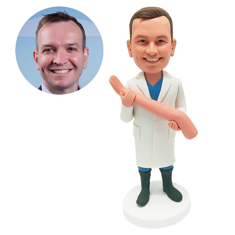personalized bobble head figure surgeon doctor nurse holding a noteboard