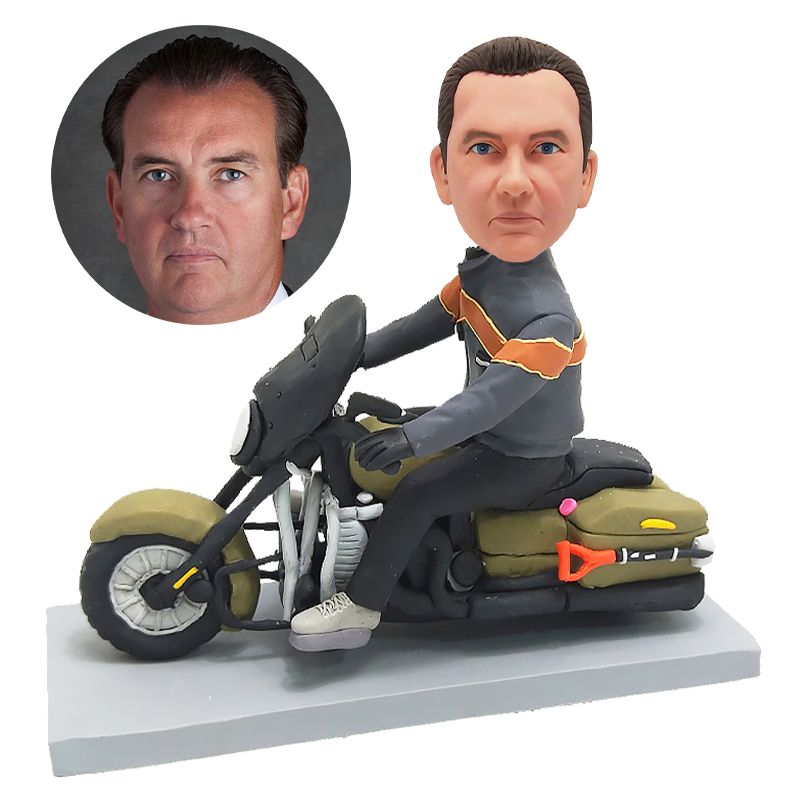 personalized bobble head figure male traveler riding a harley davidson motorcycle