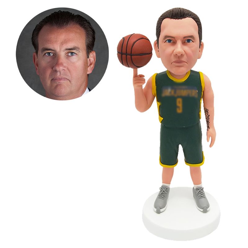 custom made bobblehead figure basketball player spinning a basketball
