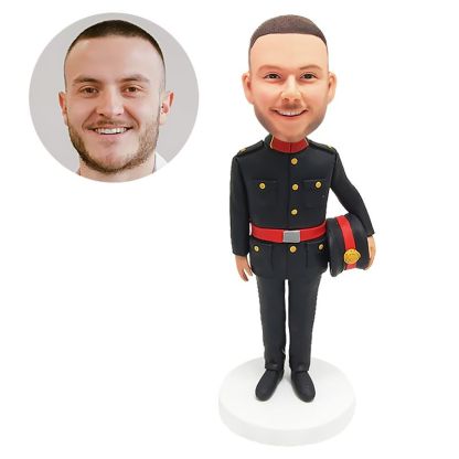 personalized bobblehead figure policeman holding a hat