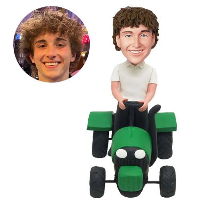 customised bobblehead figure man riding a tractor