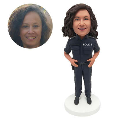 customised bobblehead figure policeman with hands on the belt