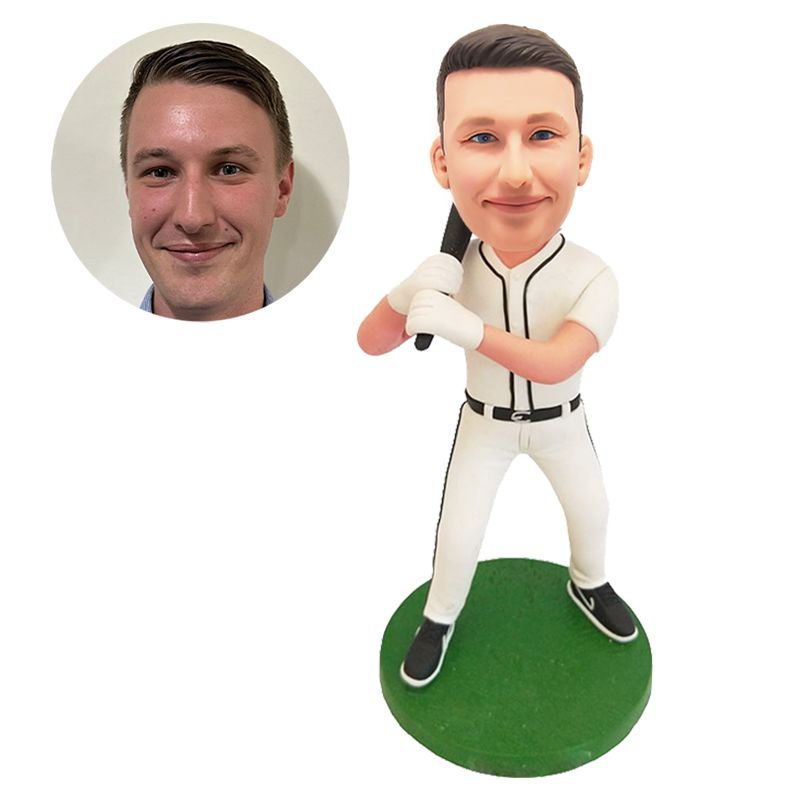 customized bobble head figure baseball hitter holding a baseball bat