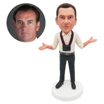 personalized bobble head figure photographer holding a camera
