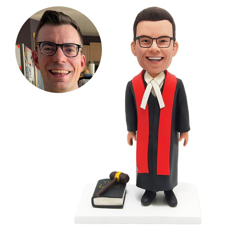 personalised bobblehead figure lawyer with a hammer and a law book
